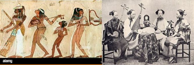 La musique existe depuis des temps recules. Il est même impossible de savoir si le rythme ou la mélodie est le point de départ de ce dernier. Cependant, quelques traces nous permettent aujourd’hui de nous montrer sa présence dans les civilisations anciennes, par exemple nous pouvons citer la découverte des os avec des trous percés dans les anciennes grottes des hommes de la préhistoire. De plus , la musique dans l’antiquité se manifestait par des sons joués suivant un seul son sur un rythme. Cette musique servait principalement à l’expression de simples émotions durant des cérémonies rituelles (fumigations, rites de passation, la religion) par des danses et des chants. En plus, pour d’autres anciennes civilisations à l’exemple de la chine ,elle représentait un mélange entre poésie et danse .En outre, ils possédaient aussi plusieurs instruments comme par exemple les cloches chinoises, les orgues à bouche, des flûtes et servaient principalement durant les cérémonies et les messes.
